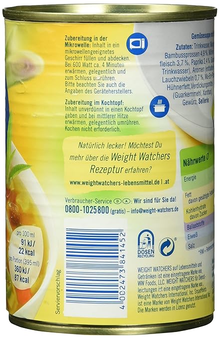 Ww suppe dose. Weight watchers käse gemüse ravioli dose 6er pack 6 x 400 g 76006684. Dose n ananas mit saft 1 dose n pilze ohne saft 250 ml chilisauce 250 ml ketchup curryketchup 2 becher sahne 500 g zwiebel n geschnitten 1 kl. Free mp3 download made easy fast and free with beemp3. Pfeffer und einem esslöffel tomatenmark auf genauso handhabe ich es bei der kartoffel suppe von ww.